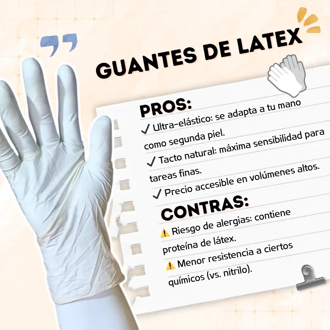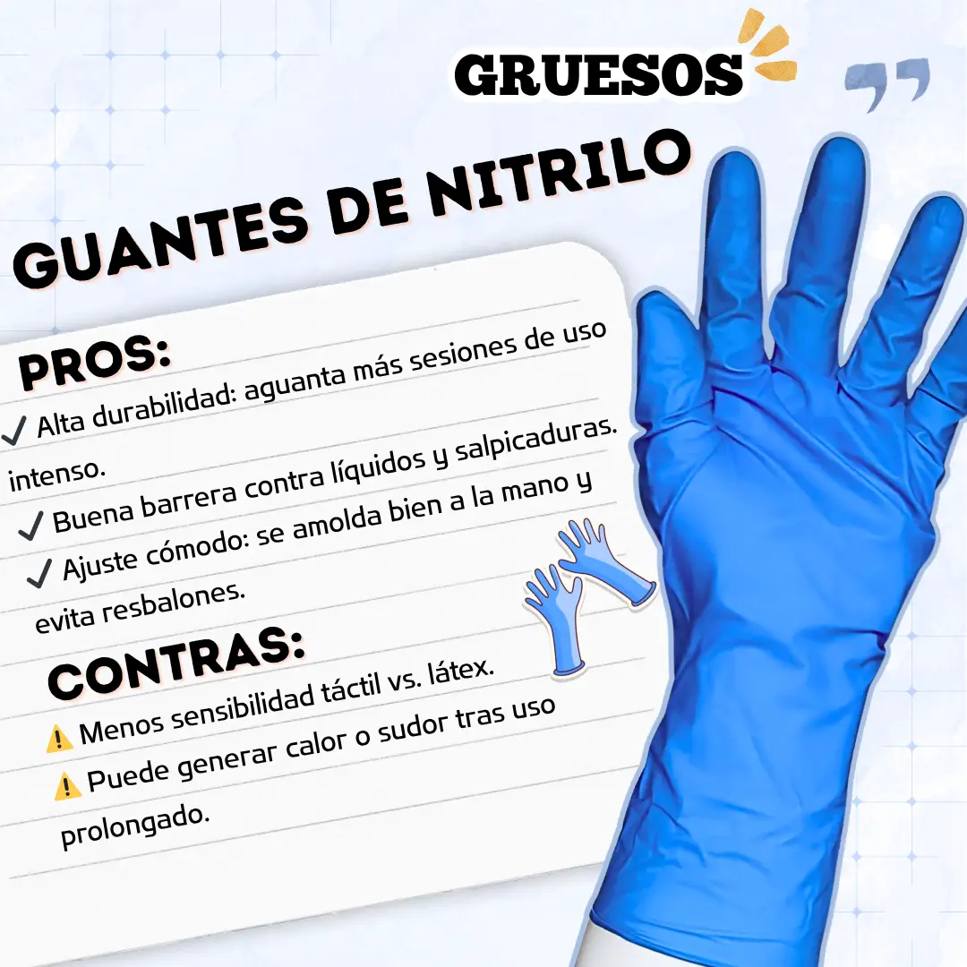 • Desventajas: Menor resistencia y sensibilidad táctil. No recomendados para químicos agresivos ni procedimientos médicos invasivos.